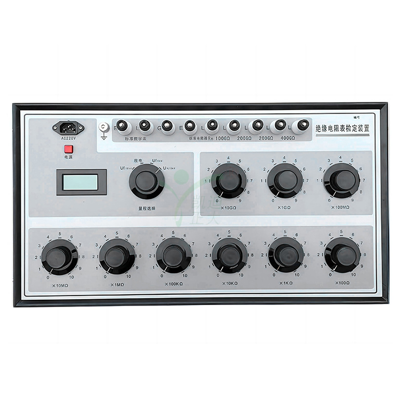絕緣電阻表檢定裝置是依據JJG1005—2019《電子式絕緣電阻表檢定規程》、JJG622—1997《絕緣電阻表(兆歐表)檢定規程》的有關檢定項目要求,并參考電力行業標準DL/T845.1—2004《電子式絕緣電阻表》通用技術條件中的相關內容設計制造的專用設備,用于檢定電子式絕緣電阻表的示值誤差、跌落電壓(Ud)。與本公司生產的恒速器(KDCY3型)配合可檢定指針式兆歐表的示值誤差、開路電壓(Uk)、中值電壓(Uz)、峰值電壓(Uf)。具有結構緊湊、性能穩定、使用方便等特點。是各工礦、企事業單位用來檢定各類絕緣電阻表的設備。