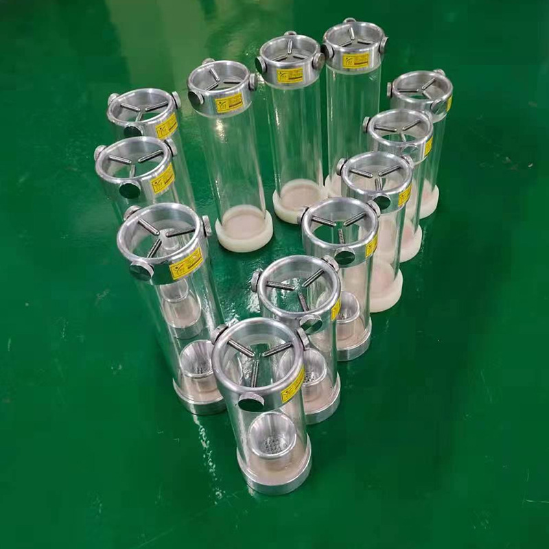 目前電纜廠均擁有多條 XLPE 生產線,但只有一套局部放電檢測設備。若采用我公司的專用終端,和剝削工具。將使局放實驗簡單宣行,可將試驗準備工序時間減少一半,事半功倍。終端雖小,效益大!它是由有機玻璃管、電纜端頭固定法蘭、高壓屏蔽罩組成,整體為懸掛式。性能優,使用方便、安全可靠。