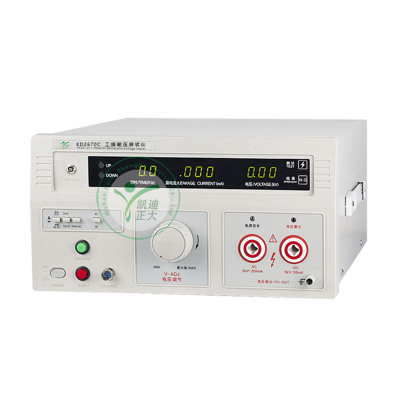 KD2670C工頻耐壓試儀是通用型的高壓測(cè)試儀器,廣泛用于電工器材、膠木電器、變壓器、電源線、電能表、電機(jī)、電源插頭座、電纜線等的耐壓測(cè)試,以及各種電子電氣產(chǎn)品的耐壓測(cè)試。