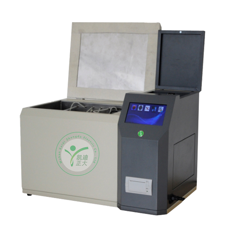 KDSR-303D全自動水溶性酸測試儀(比色法)是根據中華人民共和國國家標準GB/T7598-2008運行中變壓器油水溶性酸測試法及相關標準設計制造。采用大屏幕液晶顯示,利用微處理器控制,可以根據用戶的設定條件自動完成加熱、恒溫、振蕩、取樣、測試、清洗、打印等功能,可以一次性測量1-6個樣品,縮短了用戶的測試時間。