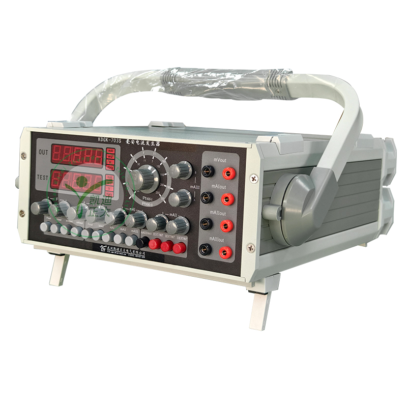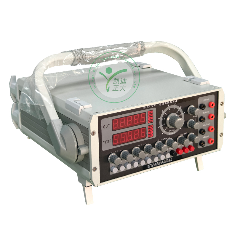 KDGK-703S便攜式綜合校驗儀(毫安發生器)是一種集數顯式電壓、電流、頻率標準信號源、Pt100 鉑電阻溫度模擬標準信號源、數字式電壓、電流、頻率測量功能于一體的高精度、高分辨率、多用途的自動化儀表校準儀器。