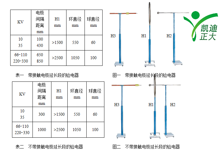 H2為多節伸縮絕緣管,頂部分別(可換)直徑Ø60mm、100mm金屬球,在分別用于10KV,35KV及66—110KV,220—330KV(見表一,二規定)。