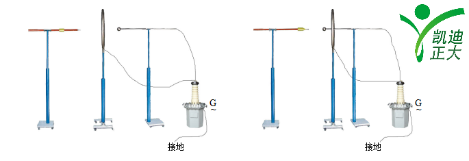 試驗時,驗電器的接觸電極與試驗電極相接觸,指示器近似地位于環形電極的中心線上(水平軸上)。