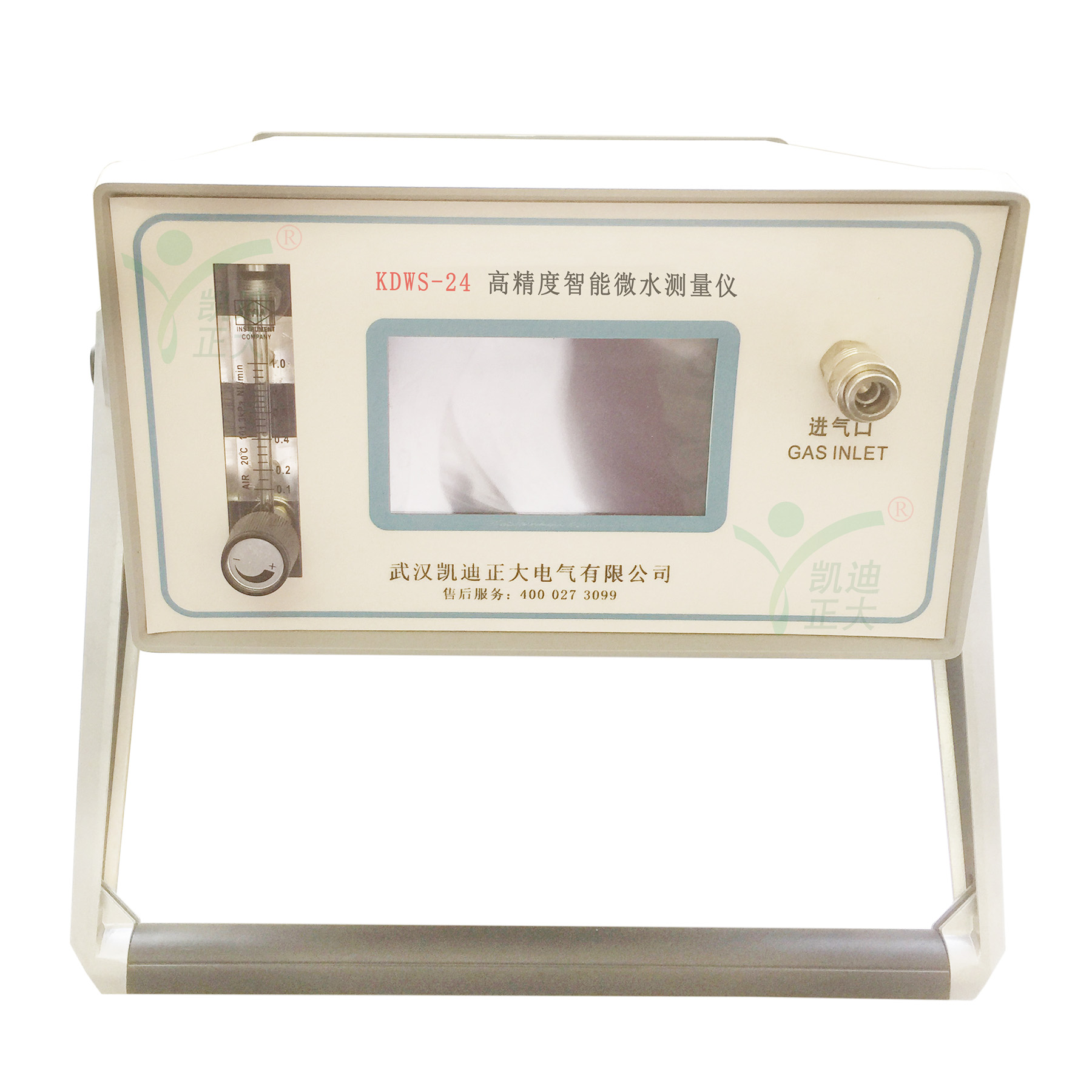 SF6氣體檢測項目:GIS 22個SF6氣室氣體微水分析;使用武漢凱迪正大電氣有限公司生產的KDWS-24高精度微水測試儀(采用德國原裝進口自鎖接頭,安全可靠,無漏氣。)檢測, 參考標準:中華人民共和國電力行業標準 DL/T506-2007《六氟化硫電氣設備中絕緣氣體濕度測量方法》,直接顯示露點、微水(ppm)、環境溫度、環境濕度、時間及日期等內容。