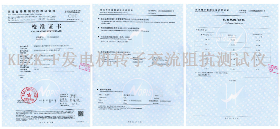 凱迪正大發(fā)電機轉子交流阻抗測試儀取得專業(yè)校準證書