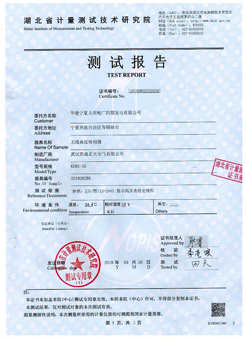 下一篇:武漢凱迪正大KDYDJ高壓交直流試驗儀校準證書