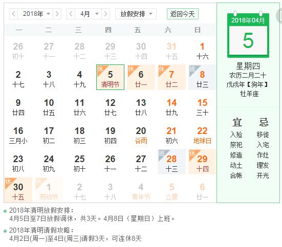 2018年清明節是農歷幾月幾日:戊戌年(狗年)二月二十 星期四