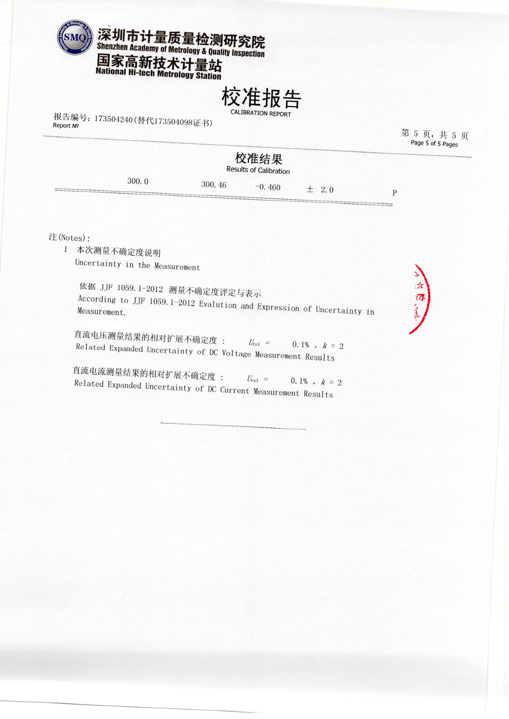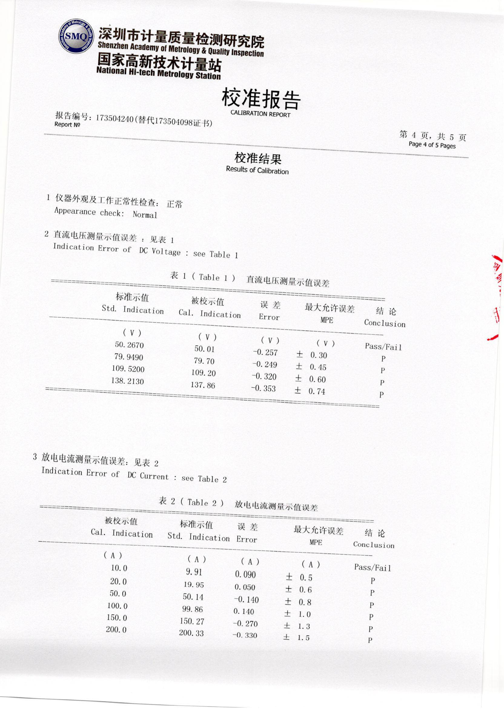 應(yīng)中廣核遼寧紅沿河核電有限公司的需求,將武漢凱迪正大電氣公司生產(chǎn)的KDZD880(110V300A)智能蓄電池放電儀出具國(guó)家高新技術(shù)研究院的計(jì)量報(bào)告后才能使用。校準(zhǔn)報(bào)告:173504098證書(shū)號(hào),出廠編號(hào):KD15042815,資產(chǎn)編號(hào):500056775,校準(zhǔn)依據(jù):參考JJF158-2016數(shù)字多用表校準(zhǔn)規(guī)范JJF(軍工)108-2015電池充放電測(cè)試儀校準(zhǔn)規(guī)范。嚴(yán)格出具檢定合格報(bào)告。