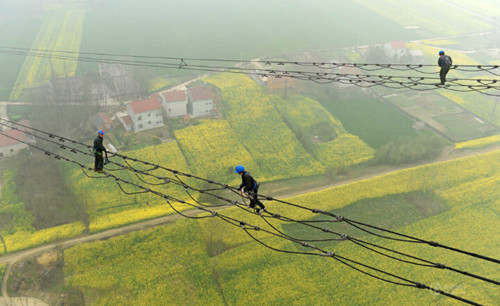 此次停電檢修從3月12日起,為期10天,參與檢修的輸電線路區(qū)段長134公里,有338座桿塔,是華中電網(wǎng)系統(tǒng)的骨干組成部分,承擔(dān)著南北電力互供的負荷分流重任。新華社記者郝同前攝