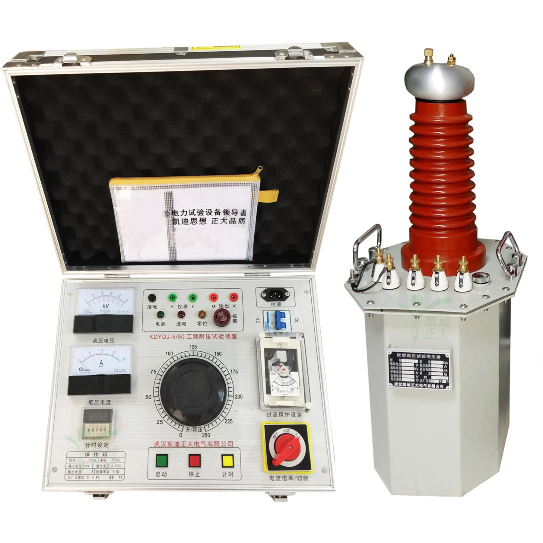 武漢凱迪正大生產的KDYDJ交直流工頻耐壓試驗裝置是根據國家最新電力行業標準而設計的、性能高新的耐壓試驗設備,用于對各種電器產品、電氣元件、絕緣材料等進行規定電壓下的絕緣強度試驗,以考核產品的絕緣水平,發現被試品的絕緣缺陷,衡量過電壓的能力,它能檢查出那些危險性較大的集中缺陷,對判斷電力設備能否繼續參加運行具有決定性作用,是保證設備絕緣水平、避免發生絕緣事故的重要選擇。