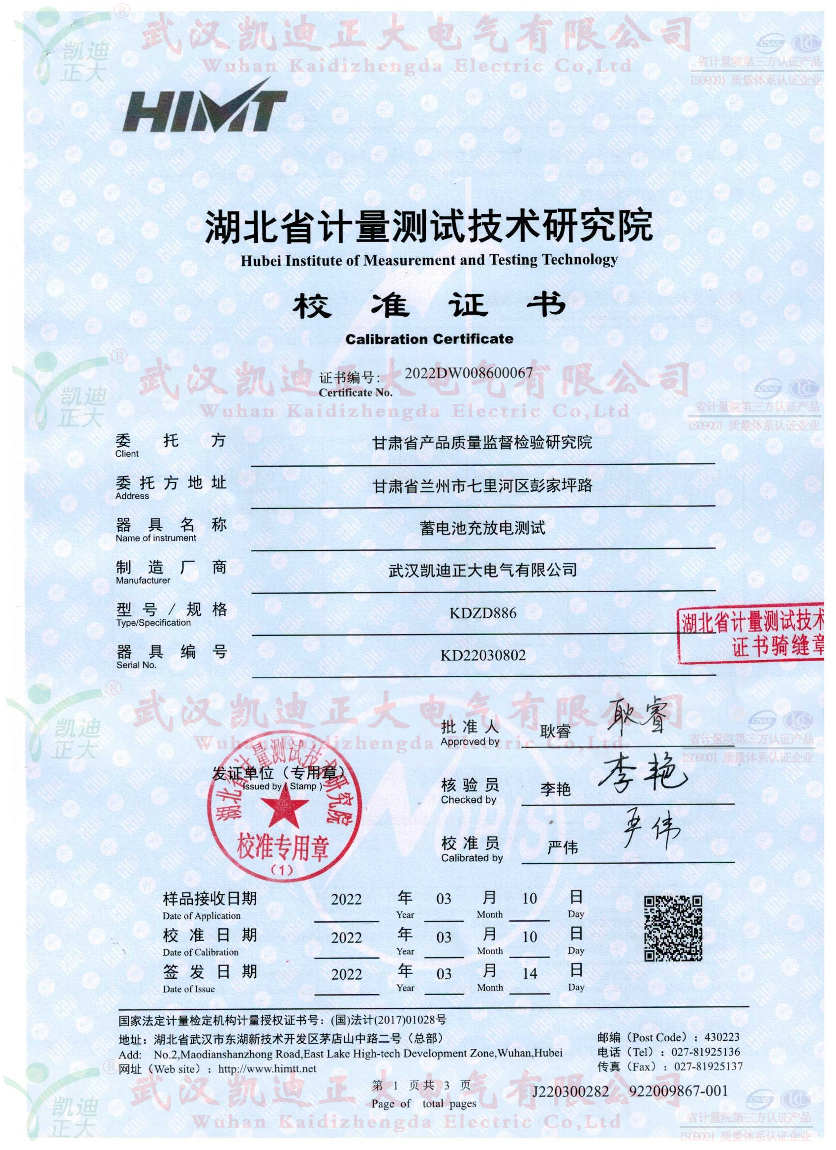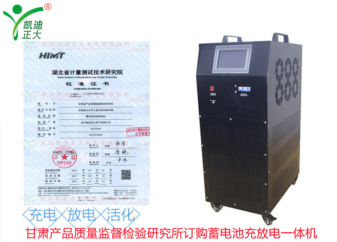 甘肅省產品質量監(jiān)督檢驗研究院在了解我司KDZD886蓄電池充放電測試儀集蓄電池恒流放電,智能充電,活化于一體等功能。隨即采購KDZD886蓄電池充放電測試儀,要求獲得湖北省計量測試技術研究院的檢定合格報告。