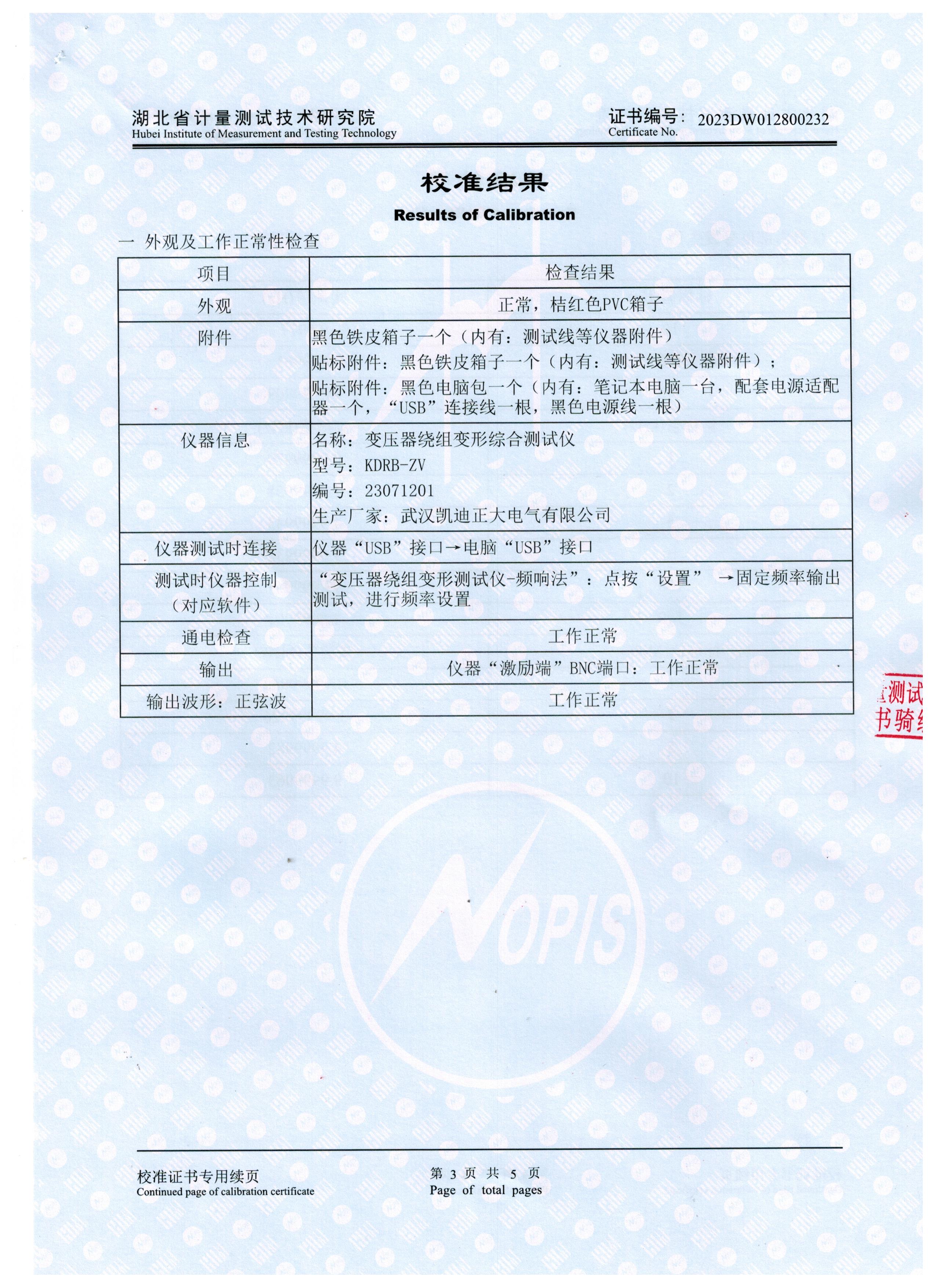KDRB-ZV變壓器繞組變形綜合測試儀特性及技術(shù)參數(shù)獲得湖北省計量測試技術(shù)研究院的校準(zhǔn)證書,設(shè)備為電力工業(yè)電氣設(shè)備質(zhì)量檢驗測試中心的要求。
