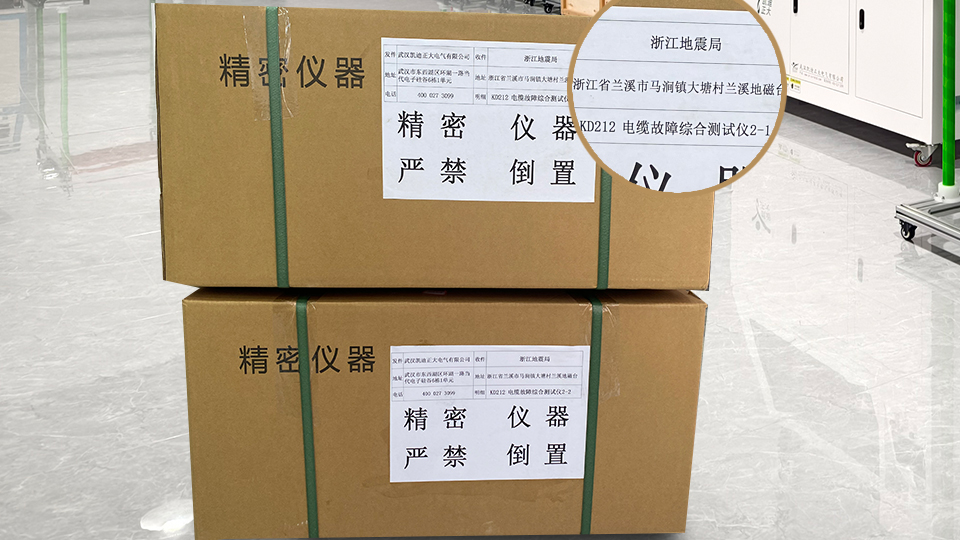 近日,浙江地震局訂購了我司自主研發生產的KD212電纜故障綜合測試儀,該批設備已順利通過湖北省計量測試技術研究院的嚴格檢測,性能指標均符合標準?,F已完成打包工作,即將啟程運往浙江為地震應急搶險工作奉獻一份力量。